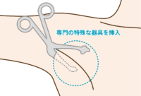 十分に麻酔が効いたことを確認した後、ワキの下を1cm強だけ切開し、特殊な専門器具の下側だけを体内に挿入します。