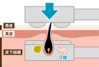 ベタベタした汗で脂肪や鉄分、アンモニアなどからできているため、皮脂腺から分泌された皮脂と混ざり、皮膚に存在する細菌に分解され、ワキガ独特の臭いが発生します。
